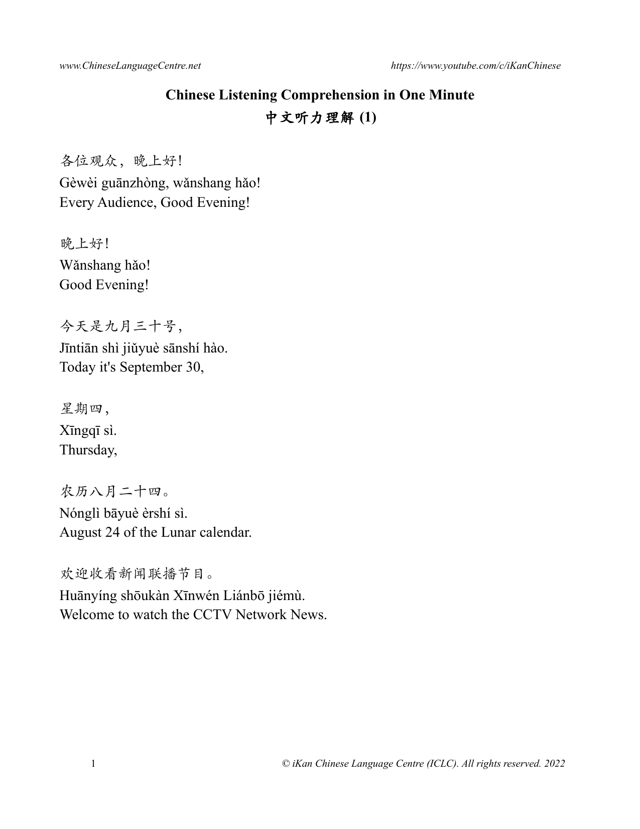Listen to the opening remarks of the most famous Chinese news program, along with detailed instructions.