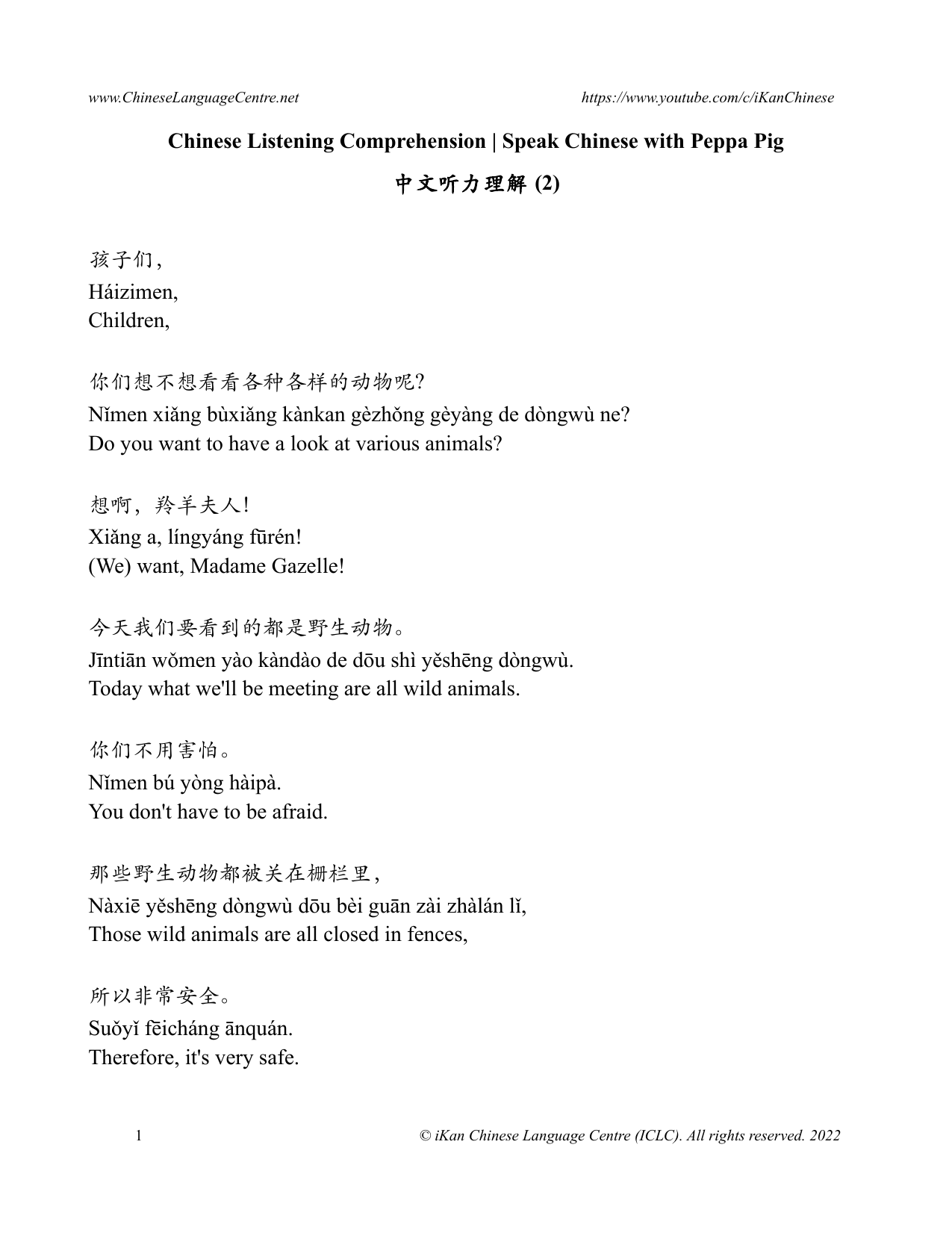 Speak Chinese with Peppa Pig | 中文听力理解 (2)
