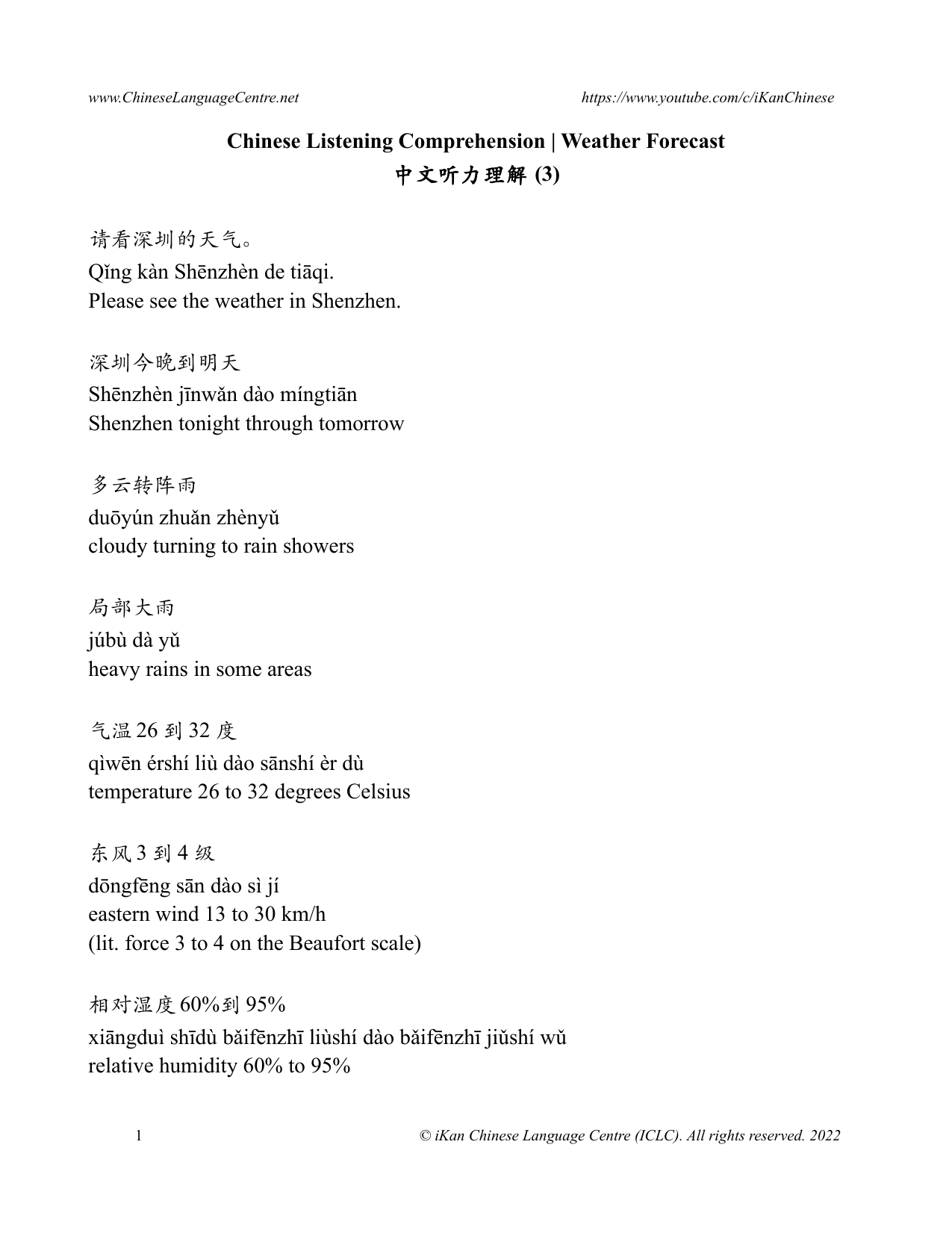 Weather Forecast | 中文听力理解 (3)