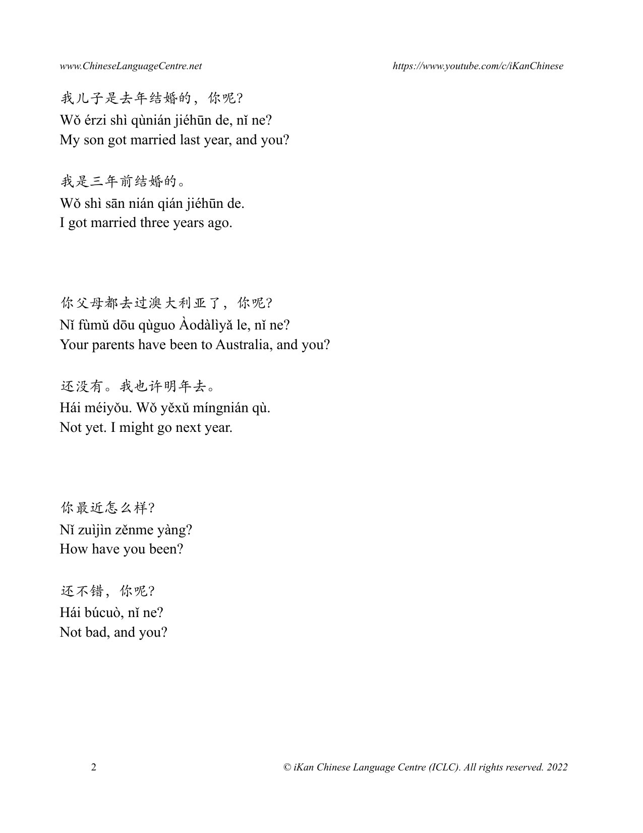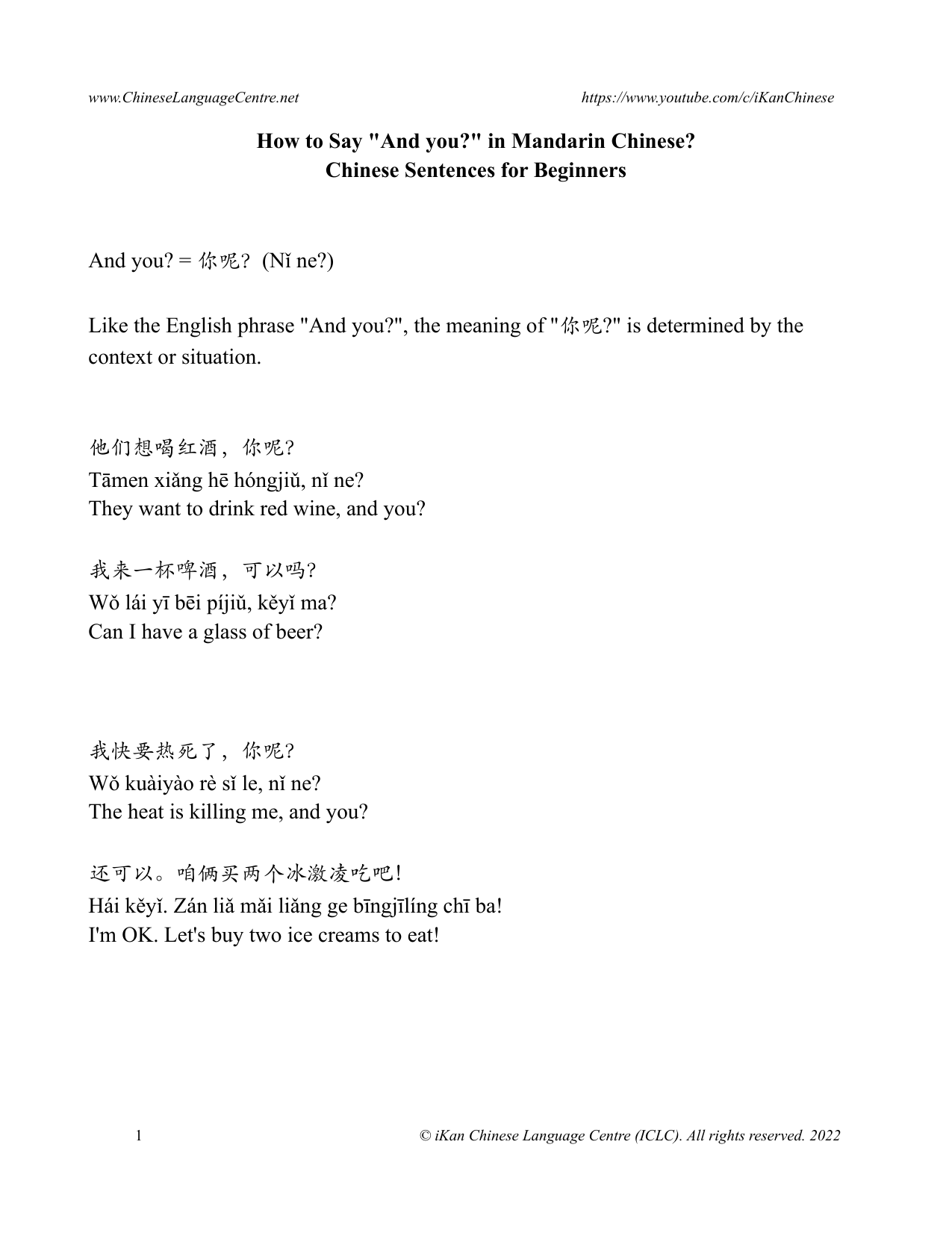 Five Chinese dialogues are used to explain how "And you?" works in Mandarin Chinese. This video also helps increase your Chinese vocabulary, including HSK vocabulary.